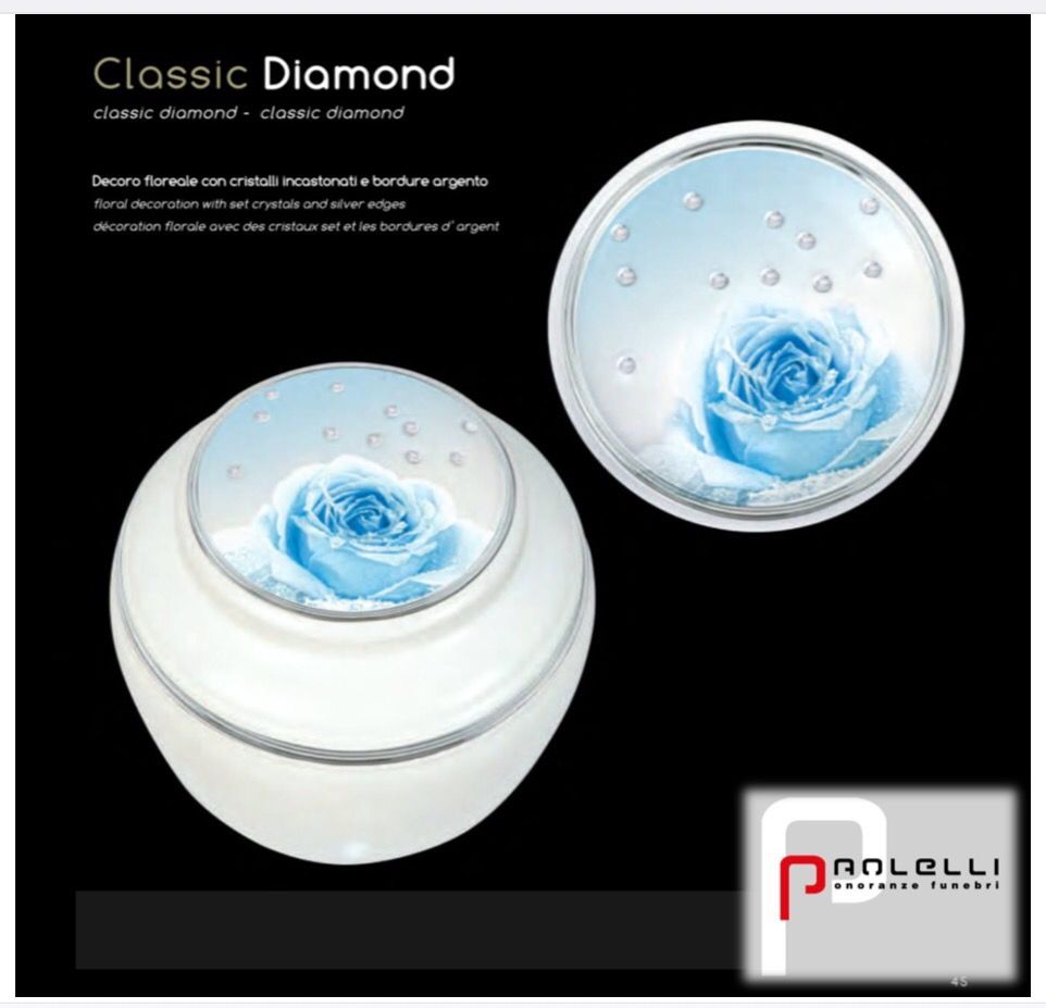 Disponiamo inoltre di un’ampia scelta di urne cinerarie di diversi modelli e dimensioni, con moltissime finiture e decorazioni, per la sepoltura o per l’ affidamento delle ceneri in base alle norme specifiche.